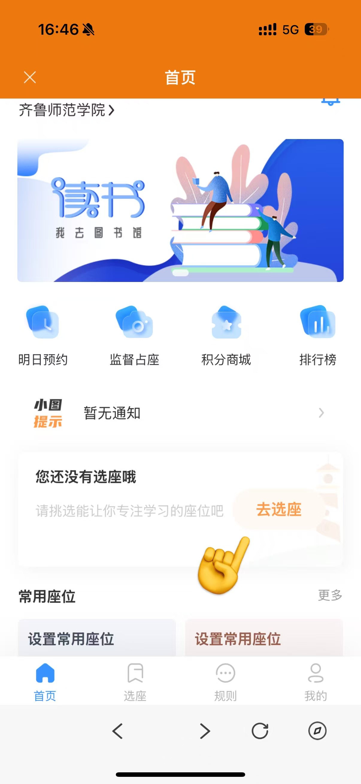 2.点击【去选座】,选择自己喜欢的座位进行预约。