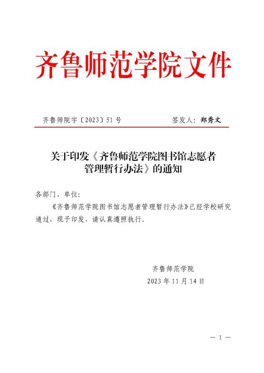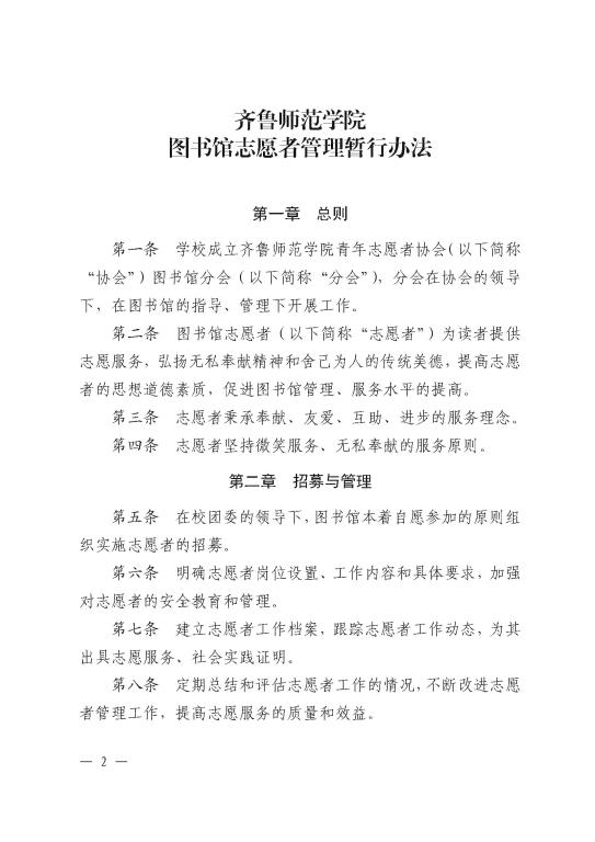 齐鲁师范学院图书馆志愿者管理暂行办法