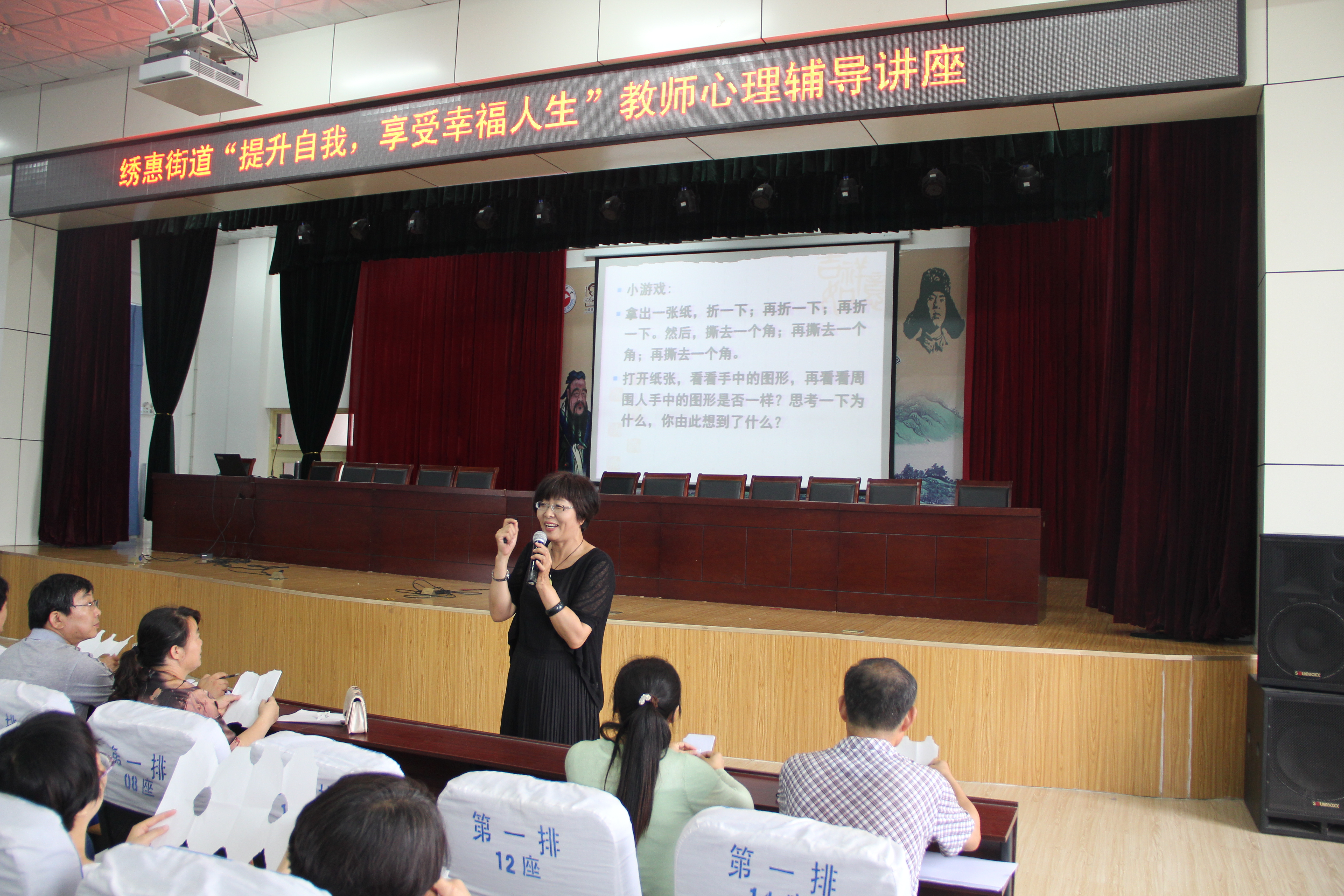 讲座现场气氛热烈,老师们认真聆听并踊跃提问。讲座结束后老师们表示,苗教授讲课活泼生动,观点新颖,令人深受启发,并且传授的方法也非常具有可操作性。这次讲座,对提高绣惠中学和绣惠小学教职工的心理健康水平,建设和谐的教育教学环境将起到积极的促进作用。