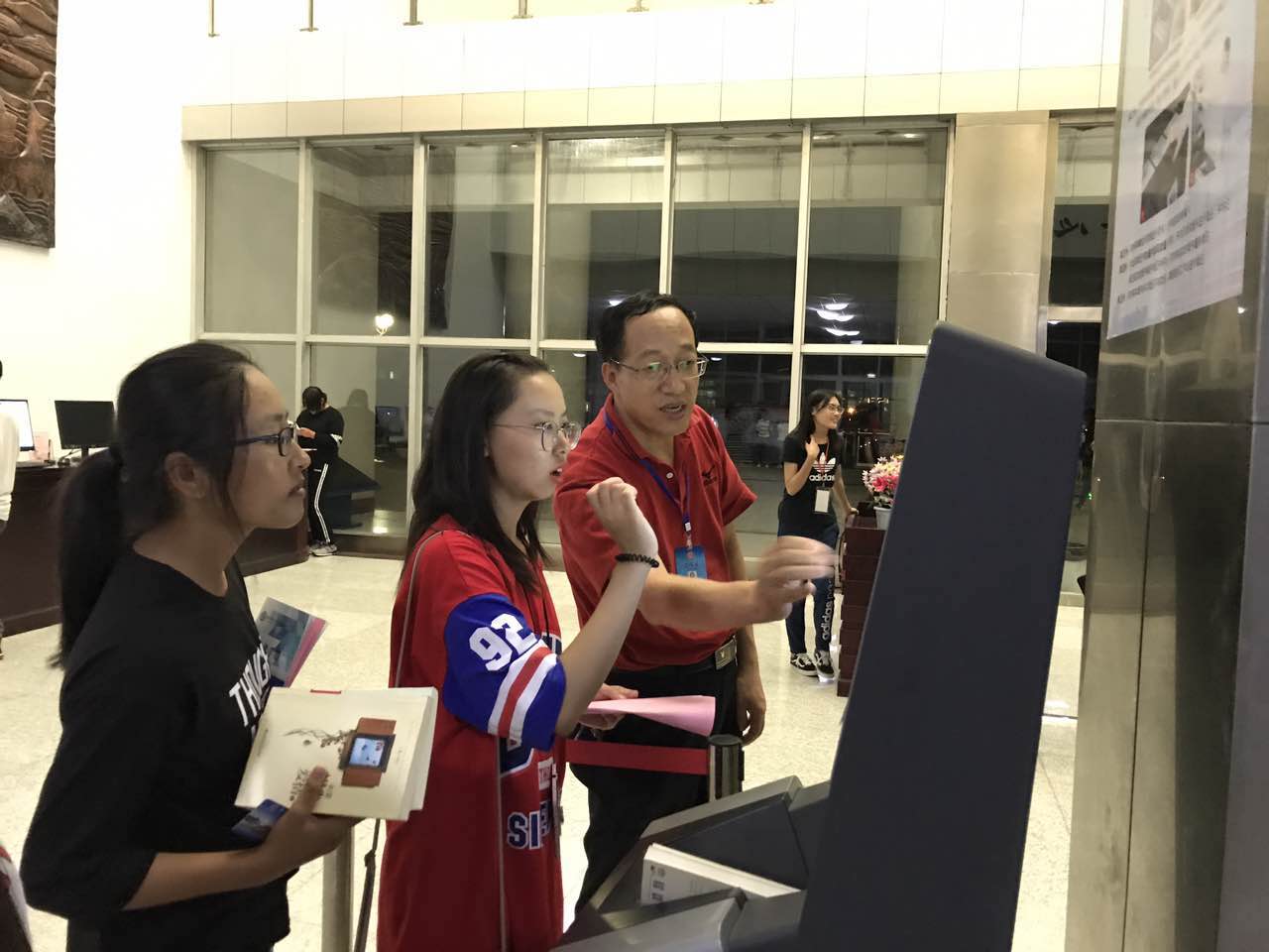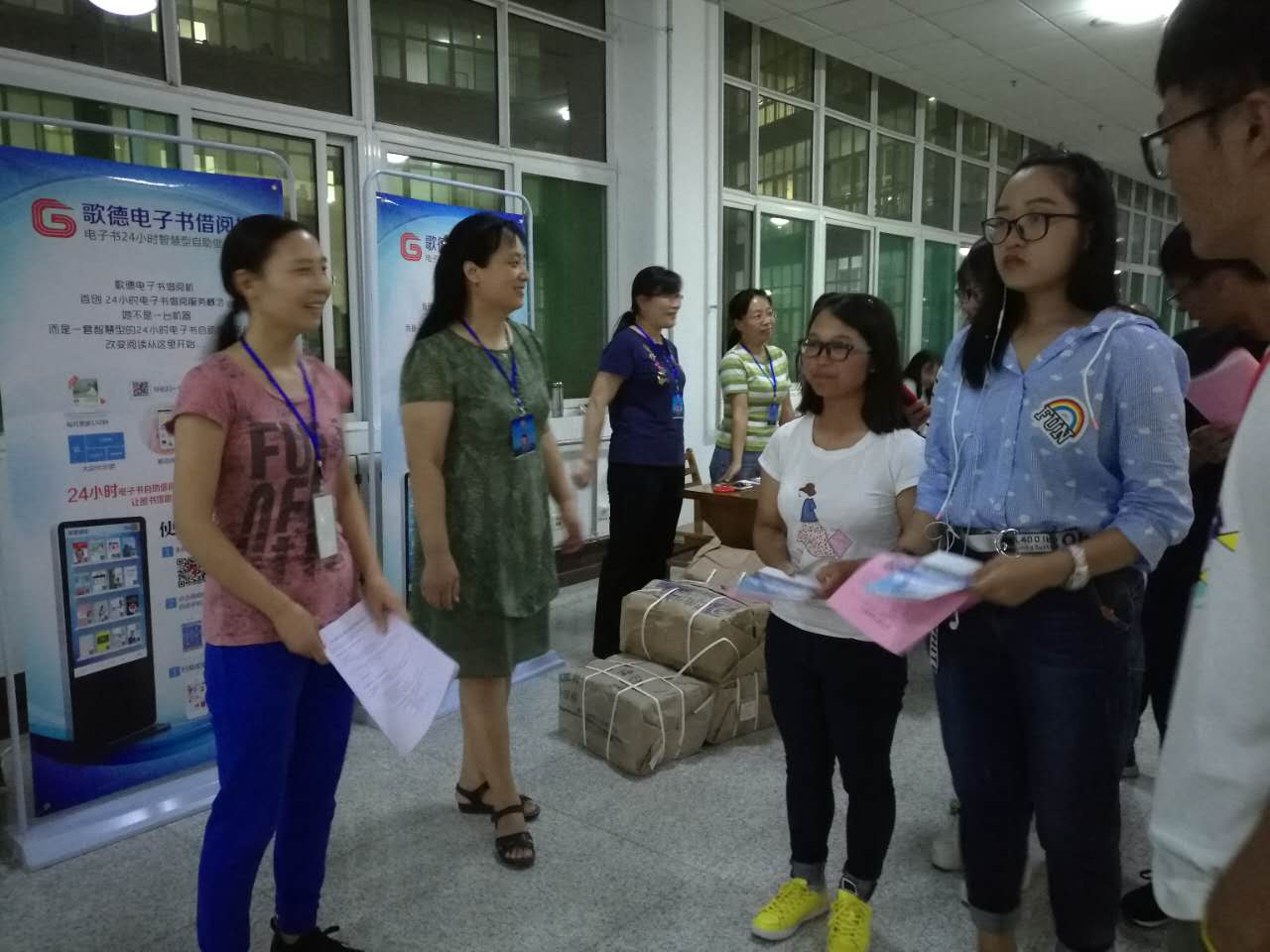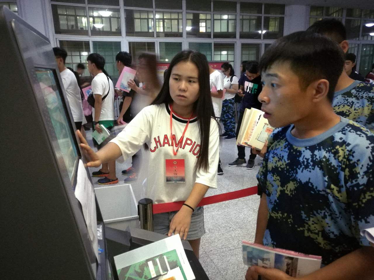 活动中,综合部老师负责组织学生有序入场,信息咨询部老师向每一位新生发放了2017版《读者手册》、《图书馆数字资源推介》宣传单页,同时对新生提出的问题逐一进行了耐心解答;各借阅室管理老师为新生介绍了本库室图书资源情况和相关注意事项,图书馆学生馆员热心为新生作了引导, 介绍了自助借还机使用方法及注意事项,并通过实际借阅进行具体的现场操作演示。