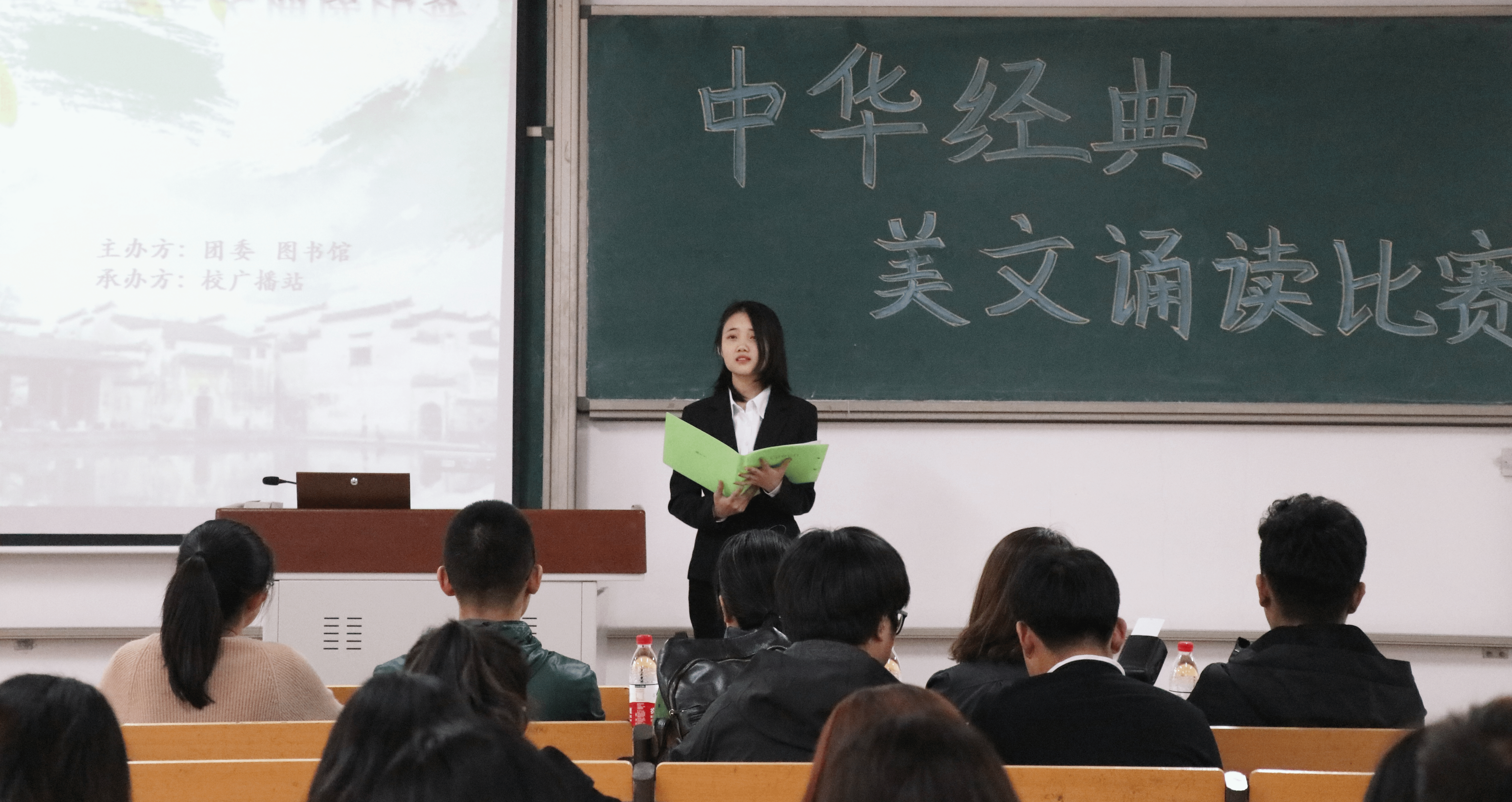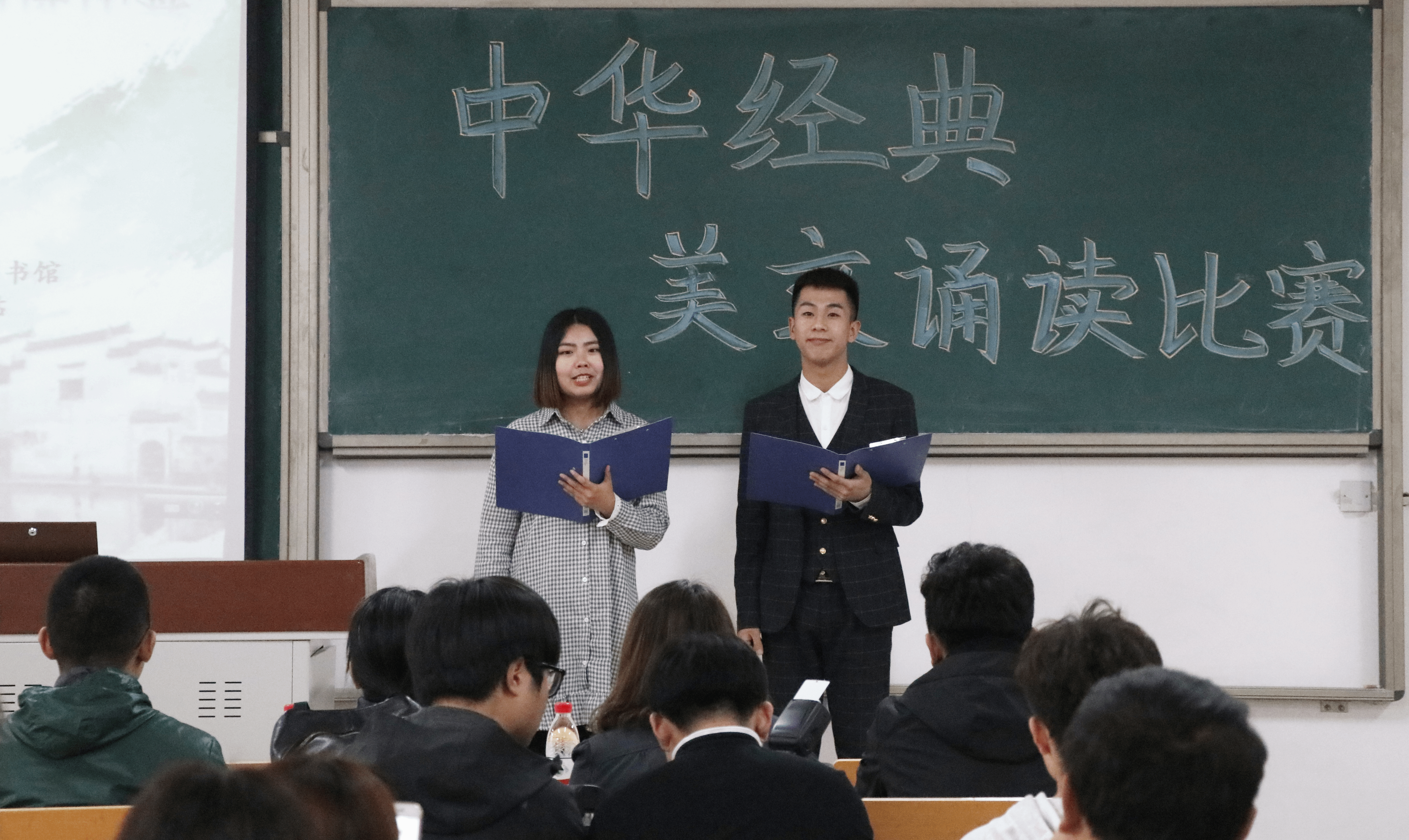 为深入学习贯彻落实党的十九大精神,弘扬中华优秀传统文化,进一步促进精神文明建设和书香校园建设,4月12日下午,由校团委、图书馆主办,校广播站承办的主题为“诵读中华经典 弘扬优秀文化”中华经典美文诵读比赛在我校章丘校区举行。