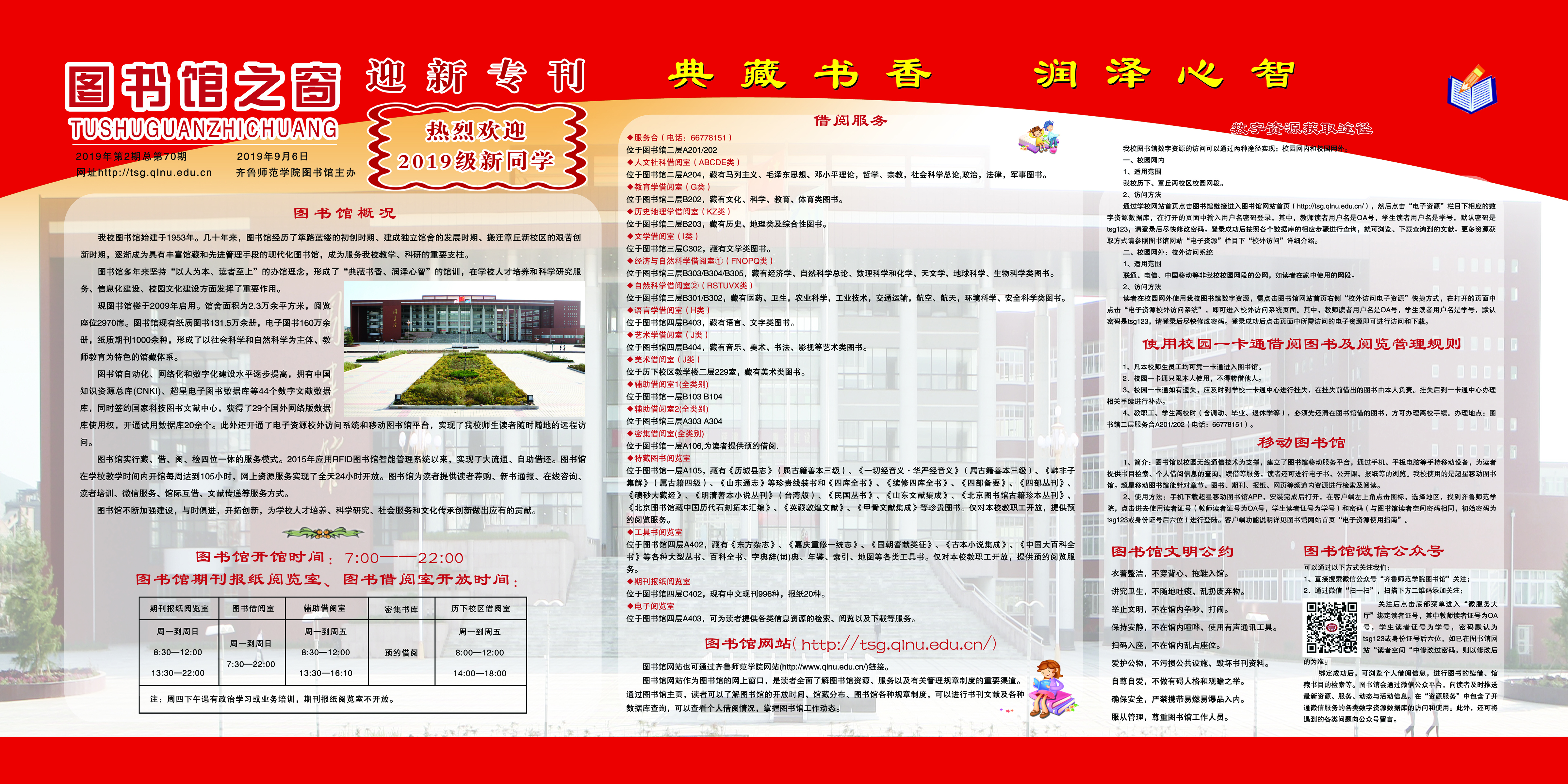 2019级的小萌新们: 欢迎你!首先祝贺你成为齐鲁师范学院的一员,成为齐鲁师范学院图书馆的新读者!