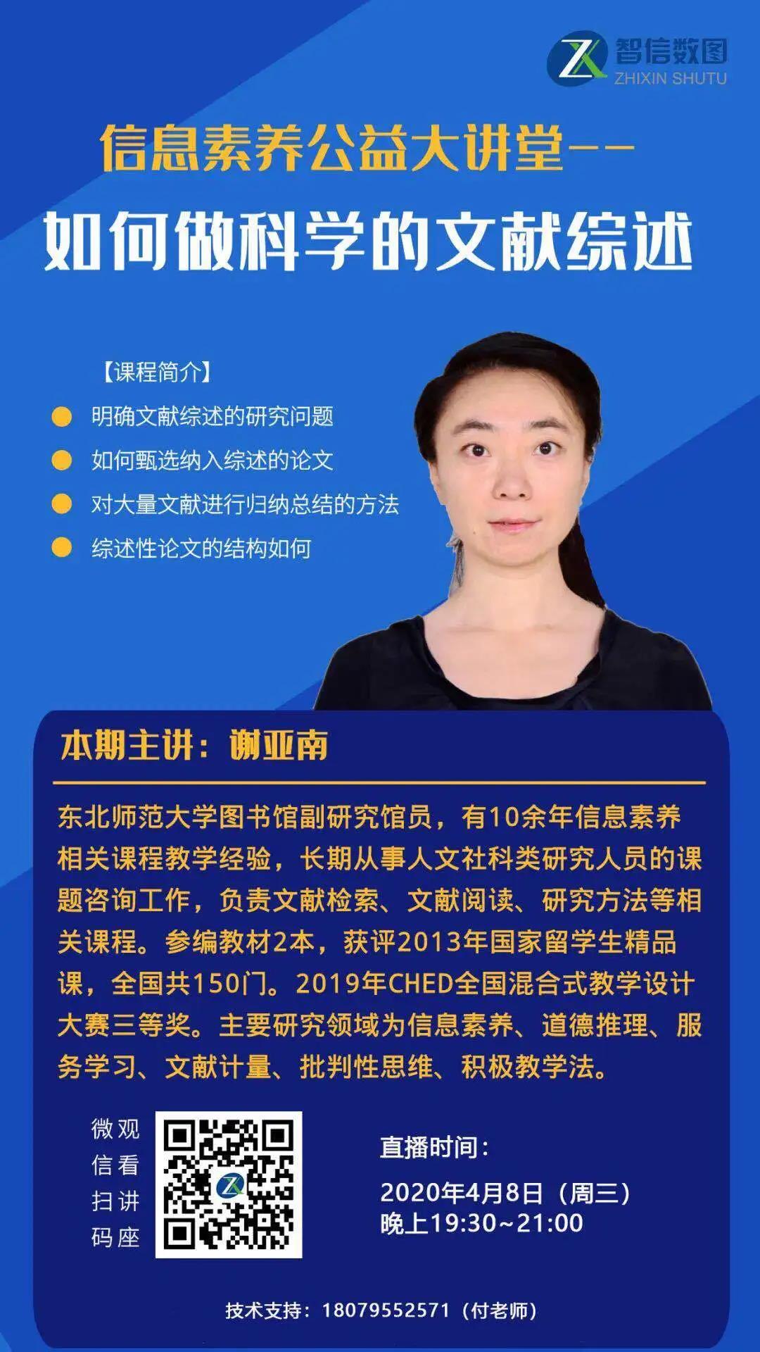 信息素养公益直播讲座——第二讲:如何做科学的文献综述