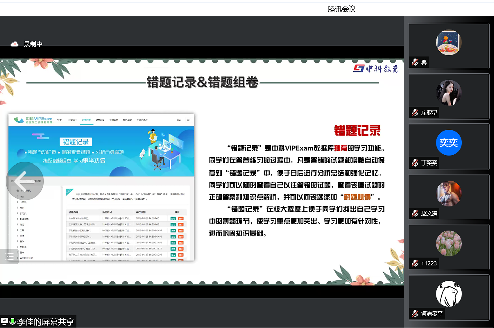 4月14日下午,图书馆联合中科数据库举办了题为《考试有方法,备考有诀窍》的VIPExam考试学习资源库使用方法线上专题讲座,利用腾讯会议软件,中科教育科技的李佳讲师为大家作了详细讲解,一百六十余名师生在线聆听了讲座。