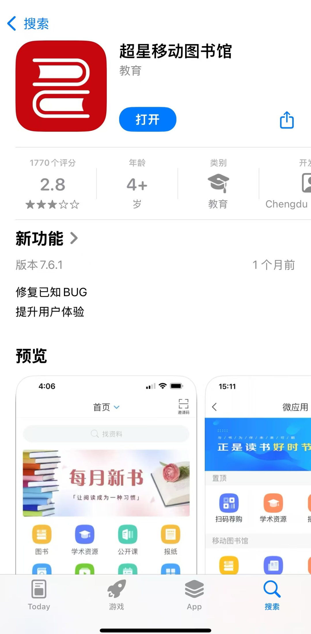 1.手机通过各软件市场下载超星移动图书馆APP。