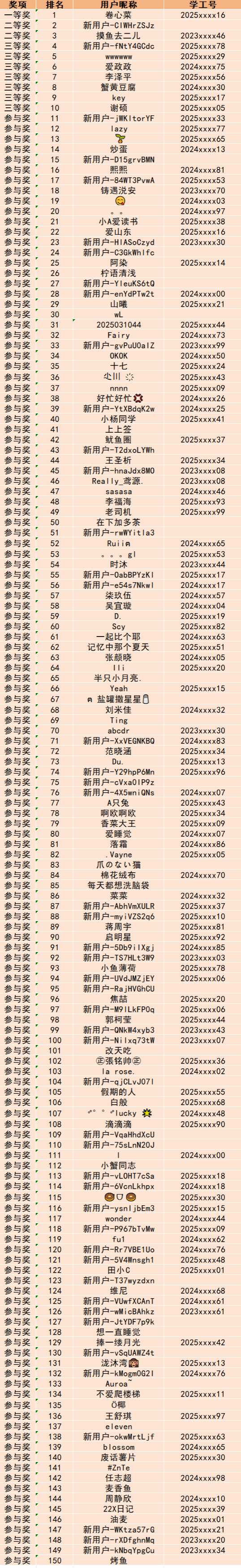 在一个月的活动期间,共有超过500名学生踊跃报名参赛。同学们沉浸在知识的海洋中,潜心阅读,积极分享,展现了新时代青年学子的良好精神风貌。经过公平、公正的评审,最终共有150名同学凭借出色的阅读表现脱颖而出,分获一、二、三等奖及参与奖。