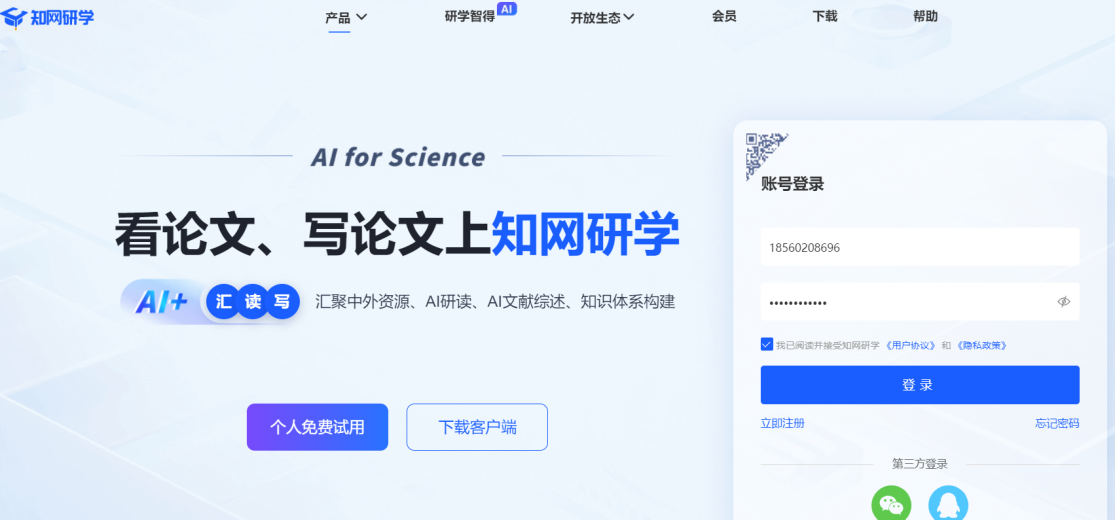 1.访问https://aiplus.cnki.net,注册或登录个人账号。