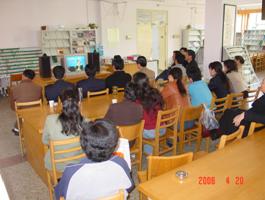 图1、图2 图书馆全体干部职工集体收看“八荣八耻”辅导录像