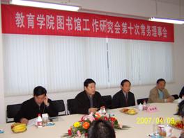 常务理事会的日程有:一、安徽教育学院图书馆王复新馆长介绍了本次会议的筹备情况及代表的与会情况。二、会议按照教育学院图书馆工作研究会章程的有关规定,对部分常务理事进行了调整,并决定10月份在广西教育学院召开2007年全国教育学院图书馆工作研究会年会。三、安徽教育学院图书馆王复新馆长和湖北教育学院图书馆胡福文副馆长分别介绍了本院向普通高校改制成功的经验。四、朱宝利理事长就会费的使用情况作了介绍,并强调各馆应按研究会章程按时缴纳会费。五、全体与会代表参观、考察了安徽教育学院的新老校区。 (图书馆)