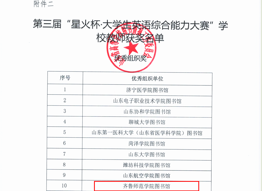 近日,由山东省高等学校图书情报工作委员会主办的第三届“星火杯·大学生英语综合能力大赛”圆满落幕。本届大赛规模盛大,吸引了来自省内外132所高校的13644名选手报名参赛。