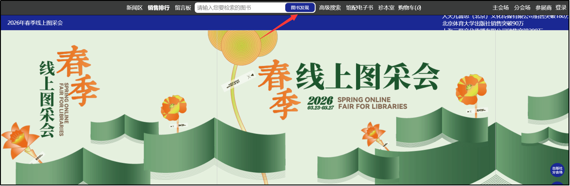 1.主会场:主要展示重点出版社书目,直接点击出版社名称即可进入选书界面。